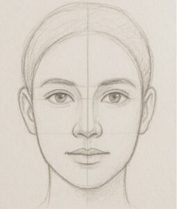 Antes de lanzarnos a dibujar detalles, necesitamos una guía. La proporción clásica del rostro humano se suele basar en un esquema muy sencillo: